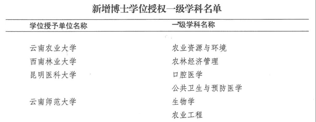经过3个多月的公示,教育部官网正式发布《国务院学位委员会关于下达2020年审核增列的博士、硕士学位授权点名单的通知》(学位〔2021〕14号),永利官网获批生物学、农业工程2个一级学科博士学位授权点,新增数量并列全国师范院校第4位、云南高校第2位。至此,永利官网共有一级学科博士学位授权点6个(教育学、中国史、地理学、生物学、光学工程、农业工程)、博士专业学位授权类别1种(教育博士)。