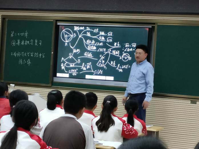 由勐腊县一中李雷老师、8858cc永利唯一官方网附属实验学校陈红伟老师同课异构“圆的章节复习”。李雷老师由小游戏作为切入点引出圆,并由学生来表述对圆的记忆来复习圆的相关概念,辅以中考真题来进行概念、公式的理解,并以诗歌来做为结尾起到首尾呼应的作用。陈红伟老师以学生朗读小作文做为本节课的引入。利用圆与点的位置关系做为本节课的主题路线,通过思维导图的方式对圆的概念公式进行扩展复习,并辅以相关中考真题来作为依托进行题型改装,实现从题中来再回到题中去。