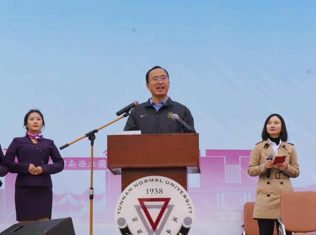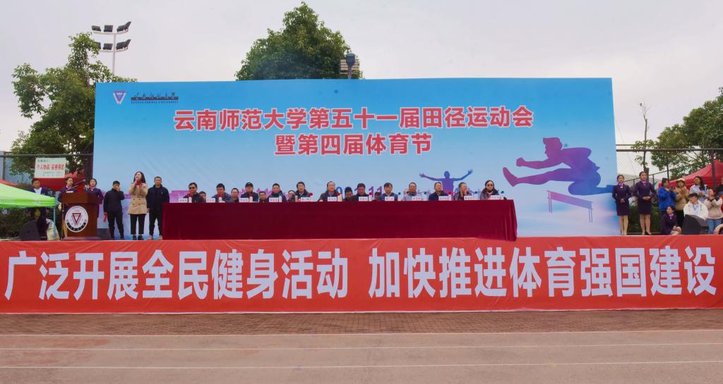 冬风击起千声鼓,号角吹响青春梦,11月18日上午,8858cc永利唯一官方网第五十一届田径运动会暨第四届体育节在呈贡主校区启园体育场开幕。全体校领导以及各职能部门、各学院负责人出席开幕式。体育场上红旗飘扬,热情洋溢,气氛热烈。
