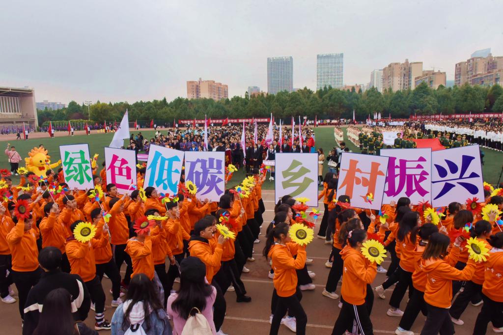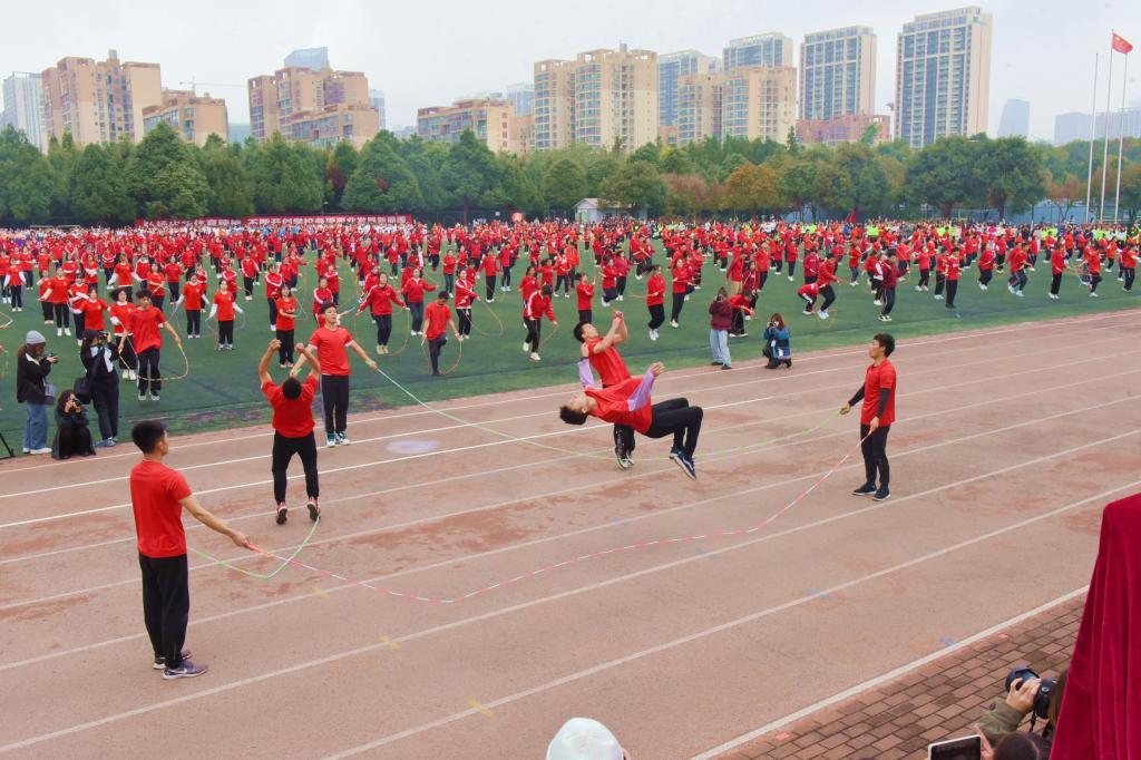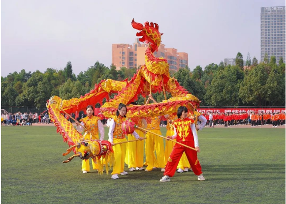 校党委蒋永文书记宣布本次运动会开幕。随后,舞龙舞狮、威风锣鼓、武术、千人跳绳、啦啦操等体育表演依次进行,展现了新时代永利官网大学生的青春风采。