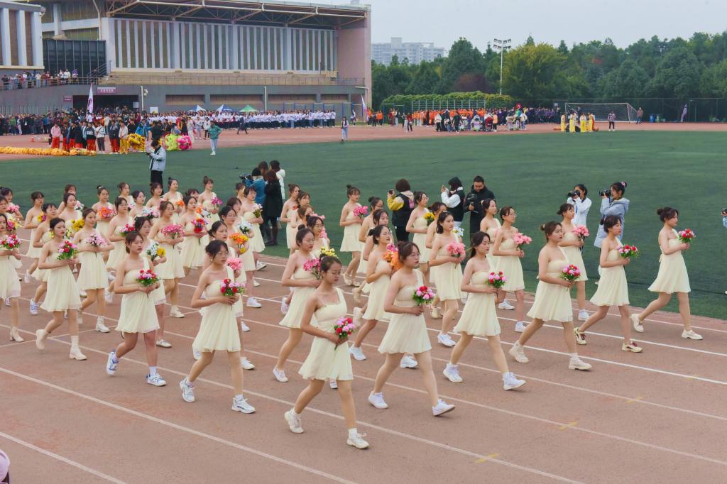 “信息信息、生生不息,不忘初心、砥砺前行”,信息学院师生喊着响亮的口号阔步前行;“以文化人,明德立行,扬帆起航,乘风致远”,身着汉服的文学院学子展示着儒雅的君子风范;以国际化办学为特色的华文国语学院方阵中,留学们脸上洋溢着自信的笑容,展示着他们锐意进取的朝气;“‘地’承千古,‘理’蕴人文,笃学力行求实路,厚积薄发地理人。”手持地球仪,手拿导游旗,矫健的步伐彰显地理学子青春的活力;“传播风尚,构筑和谐,以心为媒,沟通天下”,传媒学子用新闻传递态度,用相机记录生活,用话筒传播能量;外国语学院方阵中出现四个可爱的卡通人偶,他们用年轻的心诠释了团结就是力量、拼搏终会成功的体育精神;“以潜心科研为画笔,以广袤星空作画卷,用科学技术筑牢强国梦!”能环学院方阵手持向日葵,迈着整齐划一的步伐,昂首阔步地走过主席台,展现了学院团结、拼搏、向上的精神风貌;“‘音’为有你,‘舞’比温暖,用音乐舞蹈诠释运动之美”,音乐舞蹈学院学子步伐矫健、口号嘹亮;“向美而行,美美与共”,美术学院师生诠释了他们对真理和美的追求;“勇担重任,无悔奉献,做师生健康的守护者!”精神抖擞、英姿飒爽,身着白大褂的校医院方队,展现了白衣天使昂扬进取、团结拼搏的良好精神风貌。别样的风采,高昂的斗志,各方阵以不同的形式展现各自特色和青春风采,赢得现场观众阵阵喝彩。