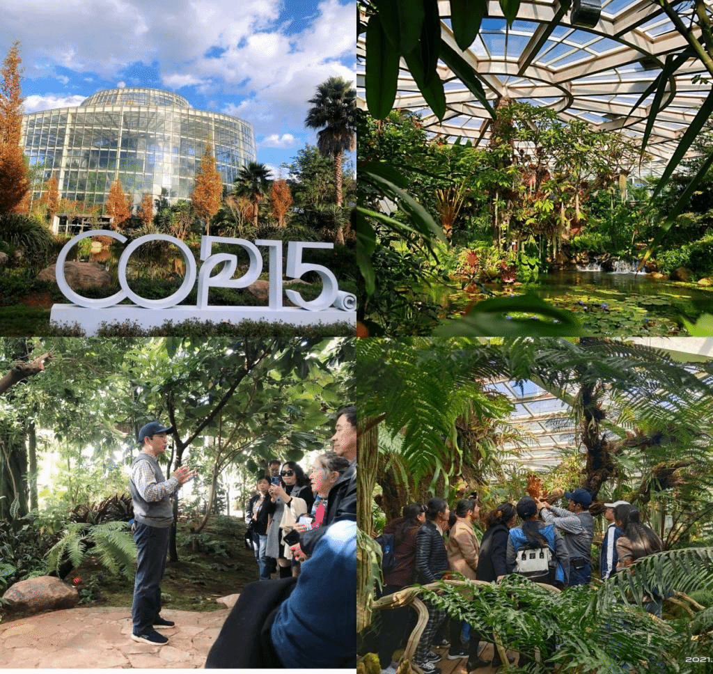 随后,在专业讲解人员的带领下,一行人参观了位于植物园内的“扶荔宫”生物多样性体验园。以“扶荔宫”温室群为核心的COP15大会生物多样性体验园包含了主体温室、兰花馆、食虫植物馆、隐花植物馆、草木百兼馆,形成错落有致、功能完备的温室群,保存特色植物2500余种,展示了云南“植物王国”丰富的物种多样性和别具特色的生态景观,是云南科学内涵丰富的生物多样性研究、保护与科学教育基地。