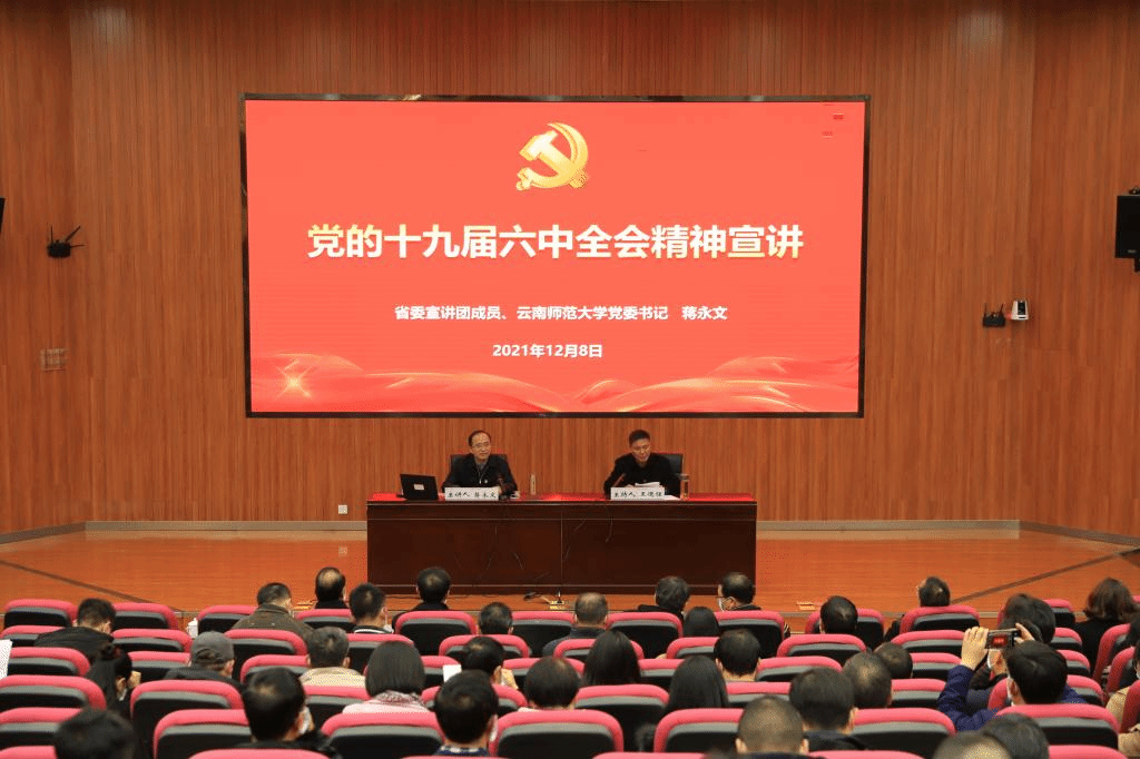 为深入贯彻落实、传达学习党的十九届六中全会精神,更好地引导全校广大党员干部和师生员工全面准确把握党的十九届六中全会精神,按照省委的统一部署和要求,12月8日下午,省委宣讲团成员、永利官网党委书记蒋永文在呈贡主校区汇学楼报告厅作党的十九届六中全会精神专题宣讲。全体校领导,省管干部,全校副处级及以上干部和机关科级干部共计500余人参加了会议。云南日报、云南电视台等新闻媒体到会议现场采访。宣讲会由校长王德强主持。