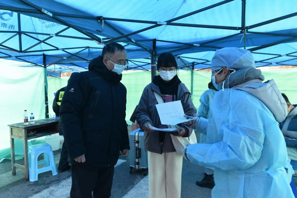 在呈贡校区3号门返校接待点,蒋书记一行细致了解返校学生人数以及返校测温消毒、材料审批、报到接待等工作,细心询问学生返校时间、流程、步骤等相关情况,叮嘱同学们一定要按照学校要求,密切配合防控举措,如实填报相关信息,毫不放松做好个人防护,以良好的心态面对新学期的生活和学习。