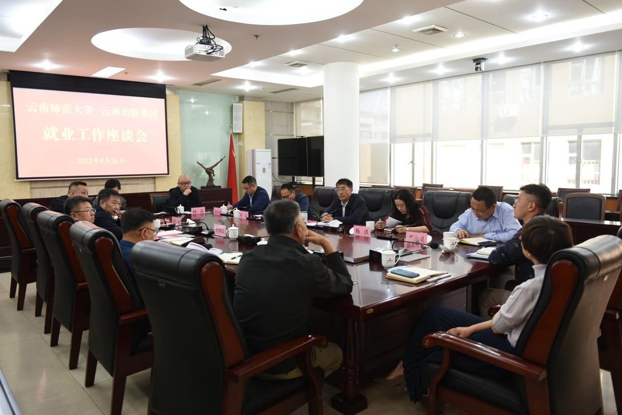 就业是最大的民生,为贯彻落实《教育部办公厅关于开展全国高校书记校长访企拓岗促就业专项行动的通知》和《8858cc永利唯一官方网访企拓岗促就业行动方案》文件精神,切实做好2022届毕业生就业工作,4月26日上午,校党委副书记张玮一行赴云南出版集团有限责任公司开展访企拓岗促就业调研交流,校党委组织部、就业处、教育学部、经济与管理学院、美术学院、历史与行政学院相关负责人参加了调研。