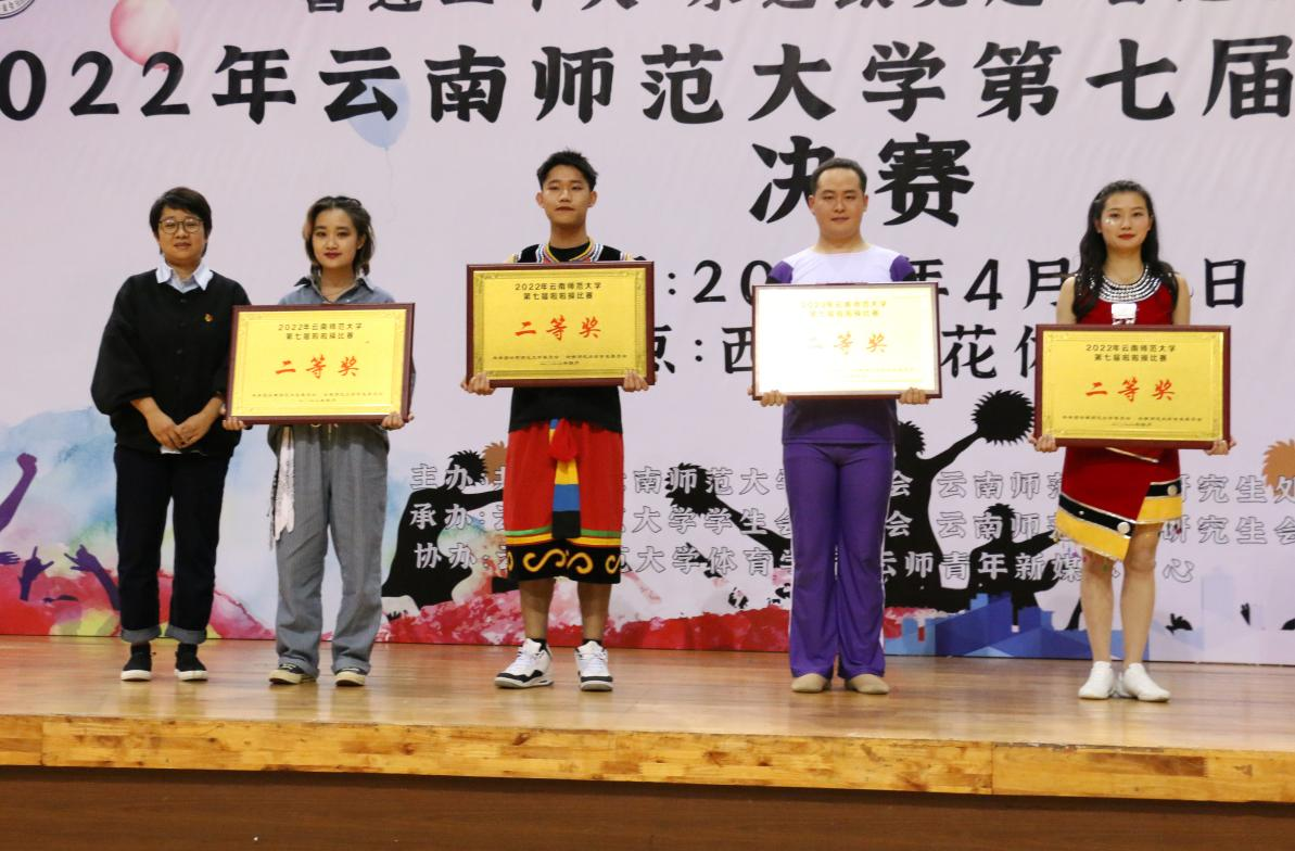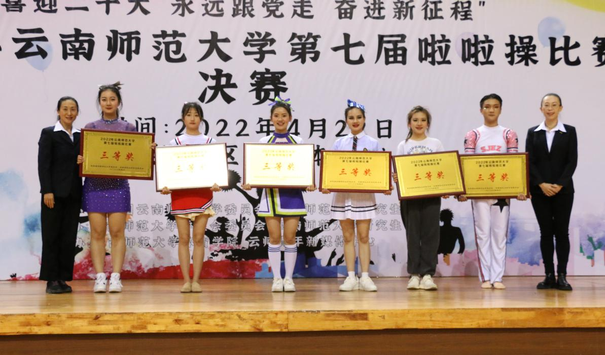 “喜迎二十大、永远跟党走、奋进新征程”。为丰富校园文化生活,营造积极向上的体育氛围,增强同学们强身健体的意识,养成良好的运动习惯,展现新时代大学生青春活力,由校团委、研究生处主办,校学生会、研究生会承办,体育学院、云师青年新媒体中心协办的8858cc永利唯一官方网第七届啦啦操比赛决赛于2022年4月22日晚在呈贡主校区莲花体育馆精彩呈现。校党委副书记李宏现场观看比赛并为获奖团队颁奖,来自各学院(学部)的代表队和师生观众热情参与了赛事活动。