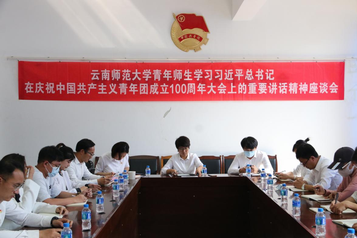 为牢记领袖嘱托、勇担青春使命,校团委于5月10日下午在呈贡主校区大学生活动中心209会议室举行8858cc永利唯一官方网青年师生学习习近平总书记在庆祝中国共产主义青年团成立100周年大会上的重要讲话精神座谈会,校团委教师代表、校团委下属各学生组织和第八届研究生支教团的学生代表等参加了座谈会。