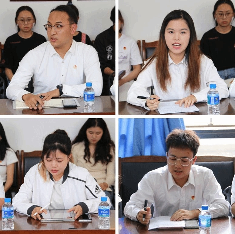 校团委副书记曹逸凡、赵彪,组织部副部长栗浩亮,科创实践科干事张灿瑜等教师代表,以及校学生会、学生社团管理中心、青年志愿者联合会、青年新媒体中心、艺术团、礼仪队、青马研习社和研究生支教团的学生代表纷纷发言,分享交流了自己第一时间学习习近平总书记在庆祝中国共产主义青年团成立100周年大会上的重要讲话精神的所思所悟、所学所获、所感所想。校团委宣传部长曹威老师主持了座谈会。