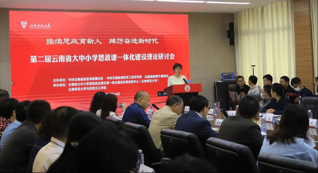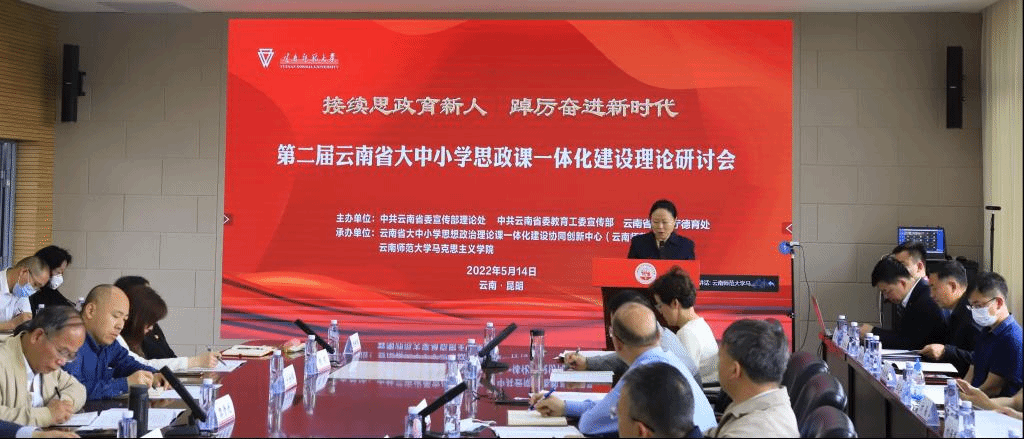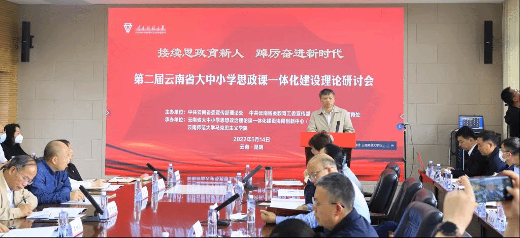 5月14日,由中共云南省委宣传部理论处、中共云南省委教育工委宣传部、云南省教育厅德育处主办,云南省大中小学思想政治理论课一体化建设协同中心(8858cc永利唯一官方网)、云南师范大学承办的第二届云南省大中小学思想政治理论课一体化建设理论研讨会在永利官网呈贡主校区举行。本次研讨会以“接续思政育新人 踔厉奋进新时代”为主题,旨在深入贯彻落实习近平总书记关于学校思政课建设重要讲话精神和考察调研中国人民大学重要讲话精神,接续推进思政课建设,落实立德树人根本任务、培养时代新人,推动大中小学思政课一体化建设内涵式发展。
