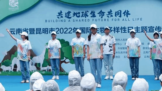 保护生物多样性就是保护人类的未来,就是保卫我们蓝色的家园。为共建地球生命共同体,身穿彩绘云南珍稀动物T恤的志愿者们发出倡议:要深怀对自然的敬畏之心,尊重自然、顺应自然、保护自然。让我们携起手来,用自己的实际行动与自然相约,从身边小事做起,从自己的家乡昆明开始,成为一名生物多样性保护的倡导者、行动者和传播者。
