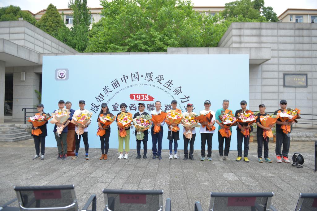 仪式上,学生志愿者讲解员向参加徒步活动的15位代表献花致敬,职教学院学生合唱团合唱了西南联大校歌,西南联大博物馆5位专职讲解员讲述了湘黔滇旅行团师生李继侗、闻一多、吴征镒、穆旦、刘兆吉的故事。最后,胡晓明总裁代表团队向西南联大博物馆赠送徒步活动纪念物品,蒋永文书记代表学校回赠了《西南联大教育救国》《闻一多舍生取义》和纪录片《西南联大》等读物。