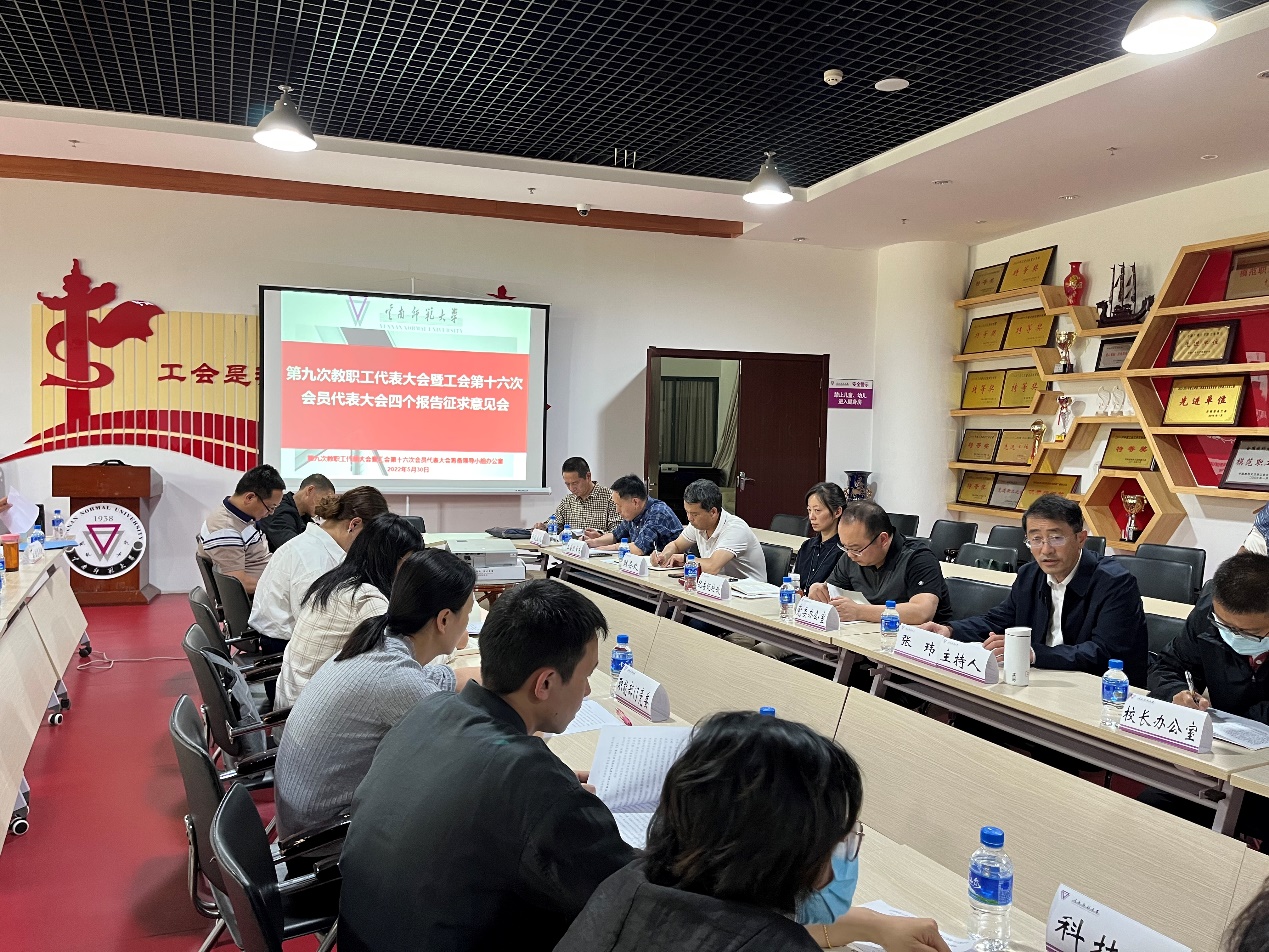 为充分征求和听取学院(学部)、职能部门教职工代表对8858cc永利唯一官方网第九届教职工代表大会暨工会第十六届会员代表大会第一次全体大会四个工作报告的意见和建议,5月30日下午,在工会教职工之家会议室召开8858cc永利唯一官方网第九届教职工代表大会暨工会第十六届会员代表大会第一次全体会议四个工作报告征求意见座谈会,学校各职能部门负责人、各学院(学部)、民主党派教职工代表等参加了会议,会议由校党委副书记、工会主席张玮主持。