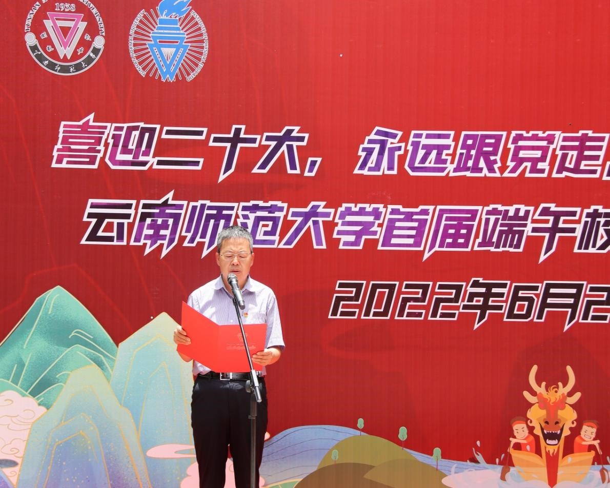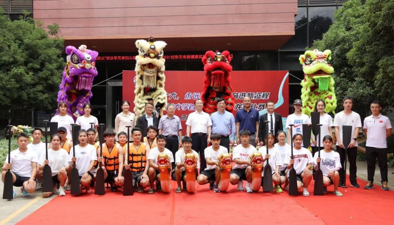 比赛在雄壮的国歌声中拉开序幕。蔡金红副校长在发表讲话时强调,体育是实现立德树人根本任务,提升学生综合素质的基础性工程。龙舟比赛进校园是体育与传统文化的完美融合,学校将以此次龙舟比赛为契机,充分展示云南民族特色、高原特色、边疆特色。要传承弘扬西南联大体育精神,团结奋斗、拼搏进取、开拓创新,促进学校体育事业蓬勃发展,同时为广大师生展现风采、推广民族体育运动赛事提供平台。