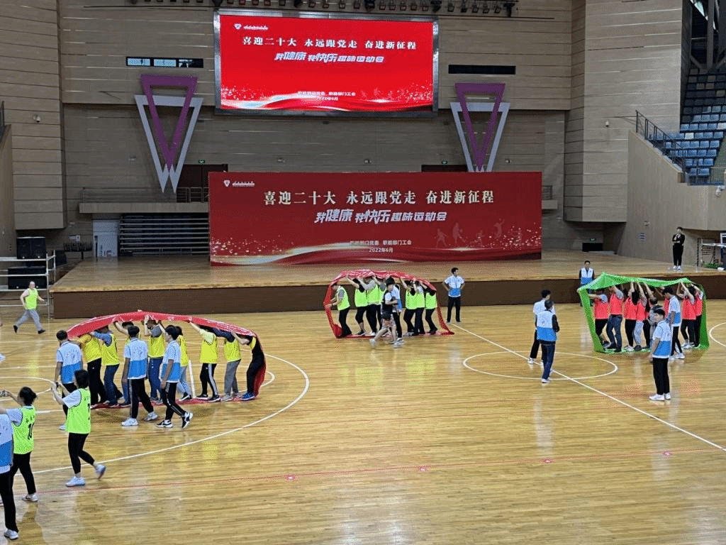 为切实抓好党建带群建工作,丰富职能部门教职工文化生活,促进支部间交流与学习,增强党组织凝聚力和向心力,6月9日下午,职能部门党委、职能部门工会在西区体育馆举行“喜迎二十大 永远跟党走 奋进新征程”——我健康 我快乐趣味运动会,27个党支部近300名教职工组成8支队伍参加。