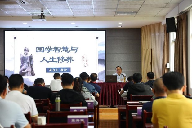 为汲取国学智慧,传承弘扬中华优秀传统文化,助力干部素质能力提升,6月9日上午,永利官网党委书记、云南西南联大干部培训基地主任蒋永文为云南省教育系统年轻干部研修班(第4期)学员带来题为《国学智慧与人生修养》的专题辅导。一二·一西南联大校区管委会、云南西南联大干部培训基地的相关负责人及参训教师聆听了辅导。