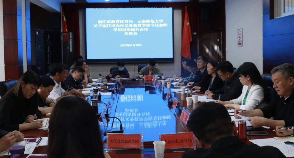 在丽江市教育体育局举行的座谈会上,双方围绕丽江市基础教育信息化、义务教育学校专任教师学历提升、教师继续教育(履职晋级)全员培训、基础教育师资队伍建设需求及打造基础教育示范区等主题进行了深入交流研讨。会上针对丽江市农村义务教育阶段学校专任教师学历提升计划达成一致意见,由丽江市教育体育局主管,委托8858cc永利唯一官方网继续教育学院、丽江师范高等专科学校具体实施。