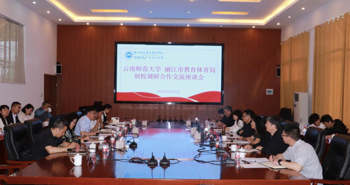 为推动云南省教师教育振兴发展,努力造就新时代高素质专业化创新型中小学(含幼儿园、特殊教育)教师队伍,着力为加快实现云南省基础教育现代化提供强有力的师资保障,6月11至12日,甘健侯副校长一行赴丽江市教育体育局和丽江师范高等专科学校开展调研交流。继续教育学院(网络教育学院)、就业处部门负责人随同调研。丽江市教育体育党工委书记、市教育体育局党组书记、局长章之尧,副局长刘清鸿,人事人才科、基础教育科、教育科学研究所等部门负责人及丽江师专党委副书记、校长毕天云,副校长朱桂香、张兰胜,以及相关学院(部门)负责人出席调研座谈会。