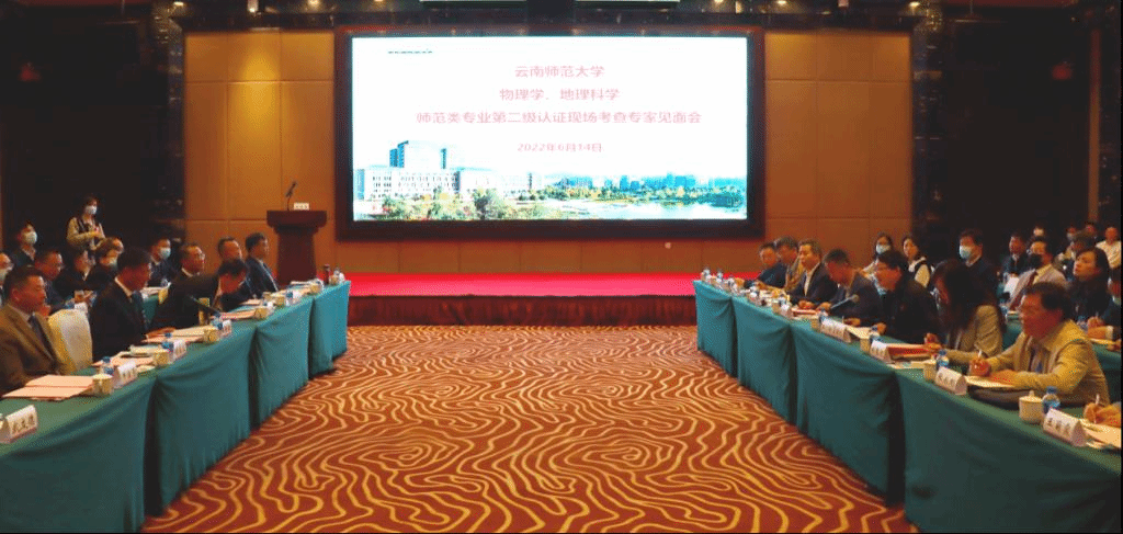 2022年6月14日-16日,受云南省教育评估院委托,以安徽师范大学原校长、教育部师范专业认证专家王伦教授为组长的联合认证专家组进驻永利官网,对物理学、地理科学两个专业联合开展为期三天的师范类专业第二级认证现场考查。