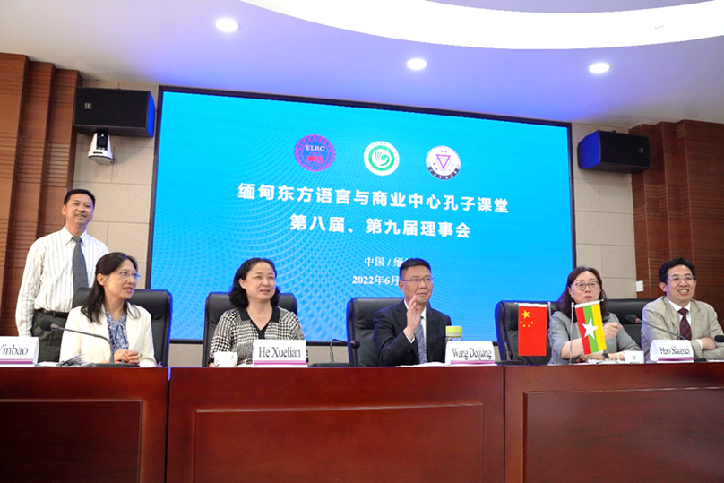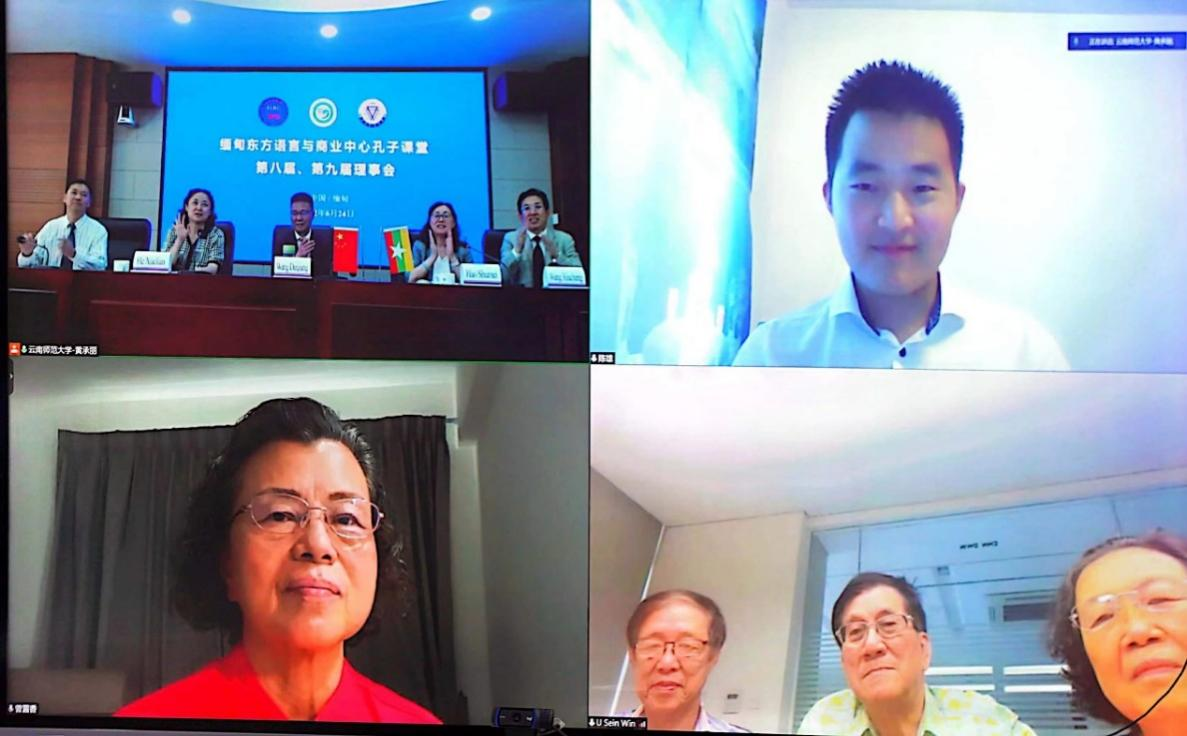 2022年6月24日,缅甸东方语言与商业中心孔子课堂第八届、第九届理事会以网络视频会议方式在永利官网呈贡校区行政楼召开。8858cc永利唯一官方网校长王德强、副校长郝淑美,华文学院党委书记和雪莲、院长王秀成,对外合作交流处处长黄瑛、东方语言与商业中心孔子课堂中方负责人施银宝作为中方理事参会;缅甸东方语言与商业中心董事长及课堂缅方负责人曾圆香、校长黄爱玲、校董杜子宏、校董兼董事会秘书黄如信作为缅方理事参会。会议由郝淑美副校长主持。