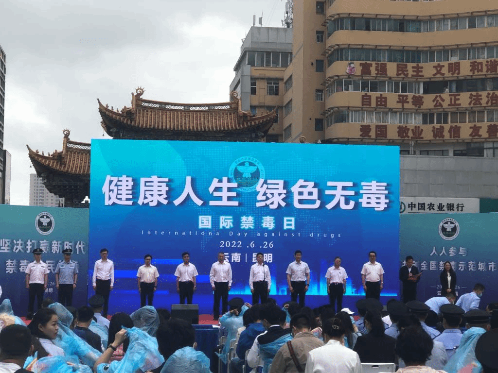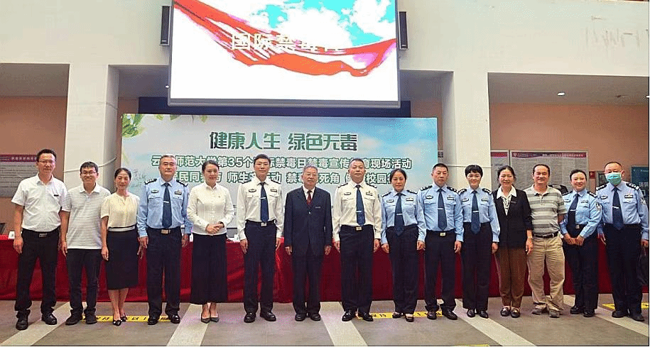 2022年6月26日是第35个国际禁毒日。为进一步加强学校毒品预防教育工作,提高广大青年参与禁毒人民战争的积极性,推动禁毒教育工作高质量发展,永利官网学生处、法学与社会学学院联合举办了2022年“6·26”国际禁毒日“健康人生、绿色无毒”主题宣传教育系列活动。副校长蔡金红,云南省戒毒管理局党委委员、副局长武强,云南省第五强制隔离戒毒所党委副书记、政委赵庆云等省市有关单位负责人,法学与社会学学院党委书记王丽萍、院长尤伟琼和来自各个学院(学部)的学生代表及禁毒志愿者参加了本次活动,活动由学生处处长张国华主持。