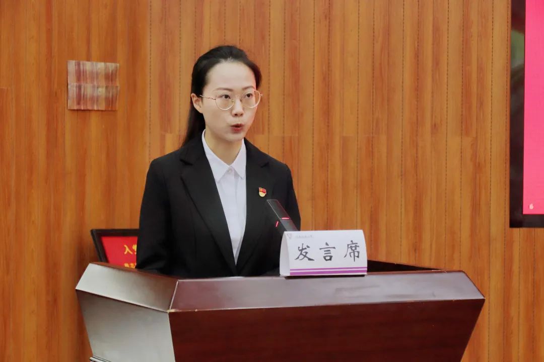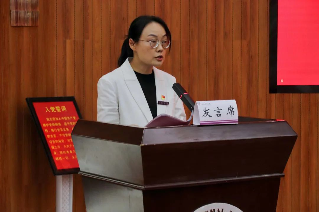 数学学院2020级研究生周颖表示能够在中国共产党成立101周年之际,作为新发展党员代表发言,她倍感荣幸。作为新党员,周颖表示将努力发扬革命先辈们的优良传统,在实践中锻炼自己,彰显新时代青年的使命与担当,并代表新党员向党组织作出承诺。