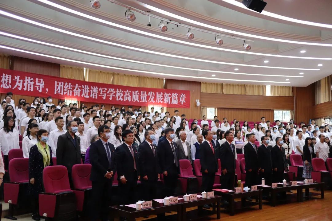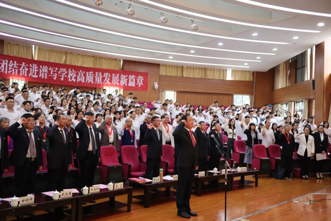 随后,举行新党员入党宣誓暨老党员重温入党誓词仪式。校党委书记蒋永文领誓,党员们面向鲜红的党旗,握紧右拳,庄严宣誓。入党宣誓是一名党员政治生命的开始,体现了一个共产党人为实现人生最高价值所做的无悔选择。誓言铿锵,是学校师生党员对党忠诚的坚定承诺。