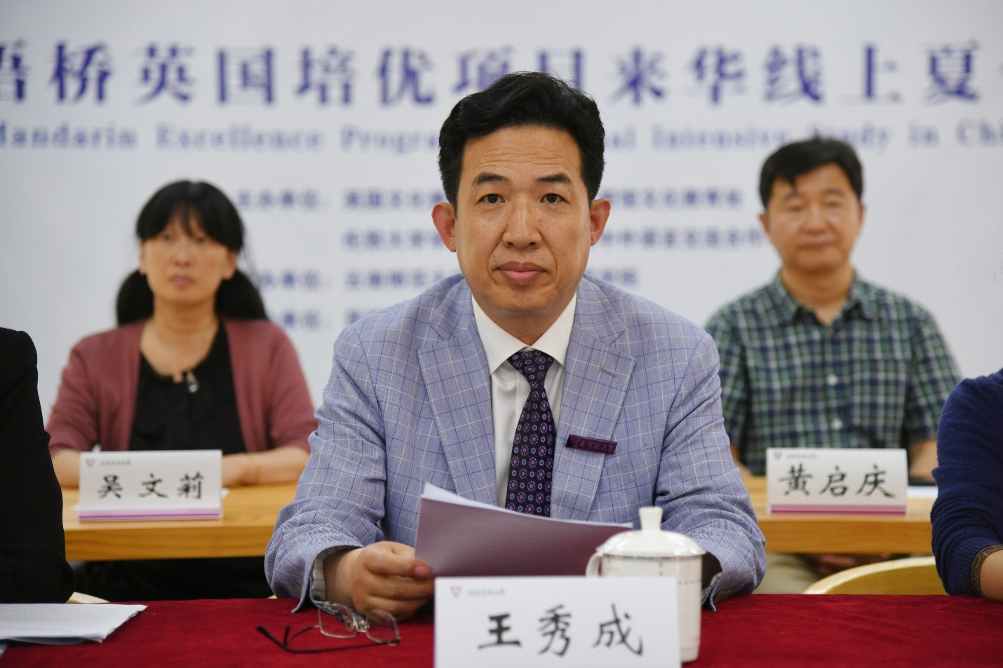 7月4日,2022年“汉语桥”英国“中文培优”项目学生夏令营开幕式在线上举行。中国教育部中外语言交流合作中心主持开幕式第一阶段,8858cc永利唯一官方网国际汉语教育学院在开幕式第二阶段开通直播分会场。中国教育部副部长田学军、英国教育部学校事务部长罗宾·沃克、英国驻华使馆文化教育公使/英国文化教育协会中国区主任包迈岫、伦敦大学学院教育学院院长李嵬出席并致辞。来自英国64所培优学校的1582名中学生,与中国11个城市的16所主办院校师生共同参加线上开幕式。开幕式由中国教育部中外语言交流合作中心主任马箭飞主持。