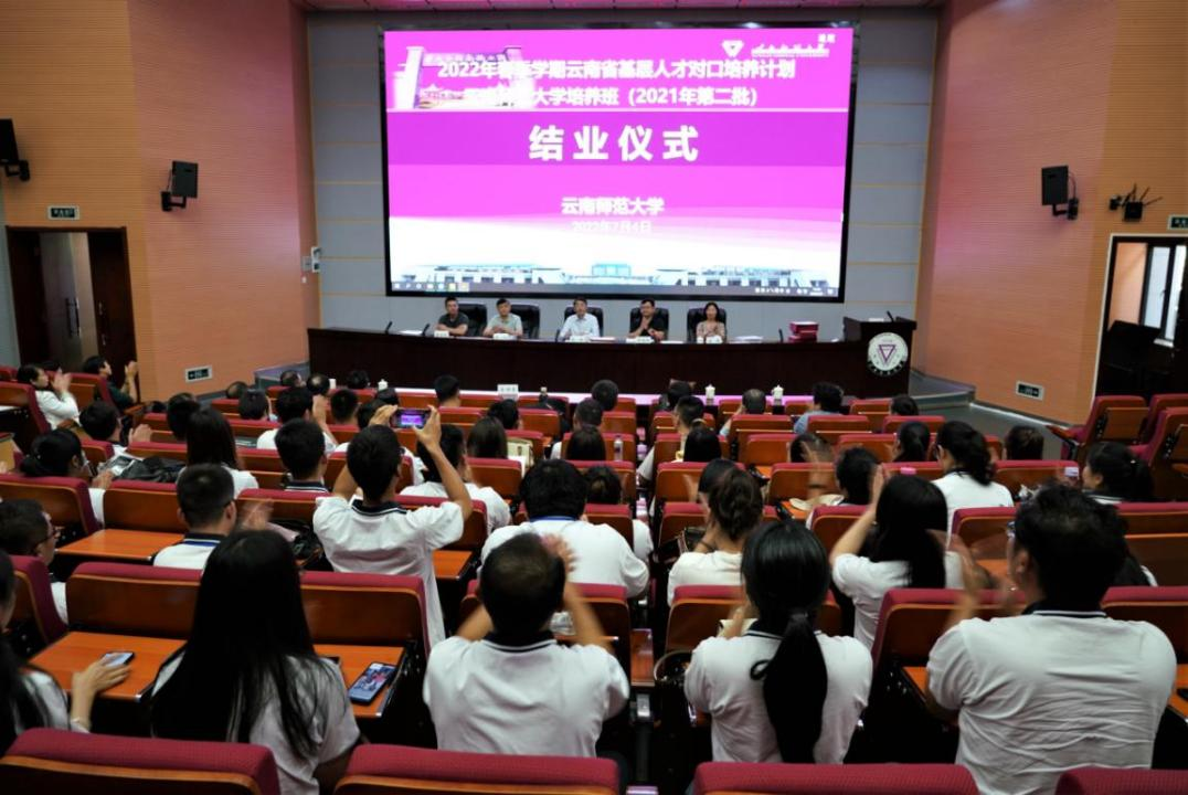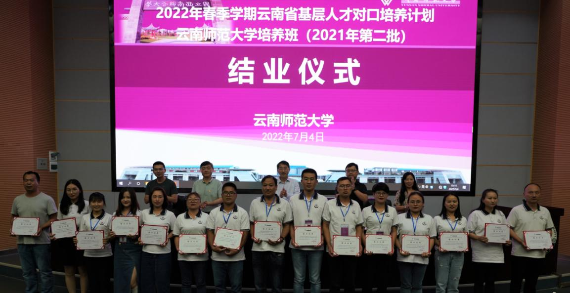 7月4日,2022年春季学期云南省基层人才对口培养计划8858cc永利唯一官方网培养班(2021年第二批)结业仪式在呈贡主校区西边中心报告厅举行。校党委副书记张玮,副校长甘健侯,相关单位负责人、导师代表及46名学员参加了结业仪式。仪式由甘健侯副校长主持。