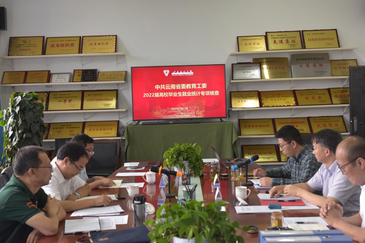 721日上午,由曲靖师范学院就业中心主任蒋成飞、云南交通运输职业学院招就处处长杨进、省教育厅教师工作处四级调研员栗青青、省高校毕业生就业工作专班成员雷蕾、昆明理工大学津桥学院学生工作处何鸿一行5人组成的第六考核组到永利官网核查2022届毕业生就业统计专项工作。学校党委副书记李宏、就业处相关负责人及工作人员、各学院(部)党委副书记、辅导员和班主任代表参加了核查会。