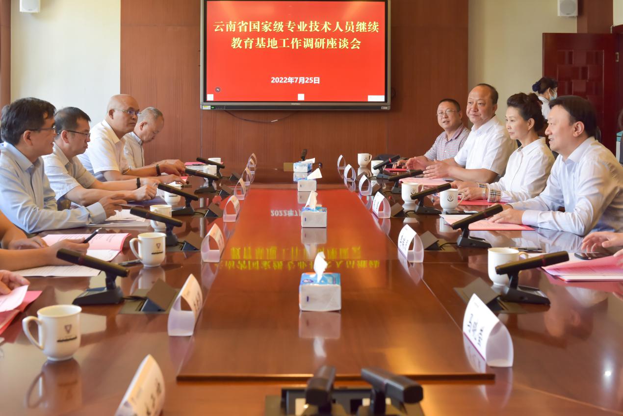 7月25日,人力资源和社会保障部专技司在永利官网举行云南省国家级专业技术人员继续教育基地工作调研座谈会。人力资源和社会保障部专技司二级巡视员高擎,云南省人力资源和社会保障厅副厅长熊梅、专技处处长李伟、专技处副处长张庆海等领导,以及云南省4家国家级专业技术人员继续教育基地相关负责人参加了座谈会。