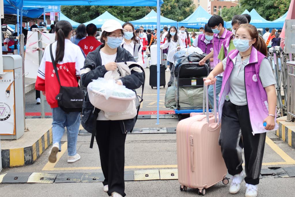 学校各部门(学院)分工明确、各司其职,充分做好准备工作,确保迎新工作安全、有序、顺利地进行。学校官方微信公众号发布了“转发收藏!@2022级新同学,你要的新生报到指南来啦!”,向广大新生和家长介绍了报道流程及相关注意事项;学校派出专车和志愿者到昆明站、昆明南站、吴家营地铁站、联大街地铁站迎接新生;学校志愿者、辅导员等对新生提供通道指引、问询服务。各学院志愿者身穿统一制服,佩戴定制口罩,在新生入校报到路径设立引导站点,以亲切热情的态度为新生提供全流程全覆盖的指引及帮助;对行李较多的新生,校内安保人员与志愿者们同心协力,利用巡逻车运送行李,为新生送上最贴心的帮助;面对新生的到来,学生公寓的宿舍管理员们积极开展工作,力求认真负责、准确快捷的为新生们办理入住手续。至此,在全校师生员工的联动协同、通力合作下,2022级新生顺利到达新“家”,开启新的征程。