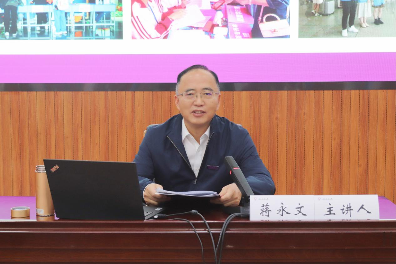 蒋永文指出,2021年,经过全党全国各族人民持续奋斗,实现了第一个百年奋斗目标,全面建成了小康社会。今年下半年,党的二十大即将召开,这是在世界百年未有之大变局加速演进的时代大背景下,我们党进入全面建设社会主义现代化国家、向第二个百年奋斗目标进军新征程的重要时刻召开的一次十分重要的大会。作为当代青年,同学们是与党和国家,与新时代同向同行、共同前进的一代,生逢盛世、无比幸运,同时也肩负强国重任。