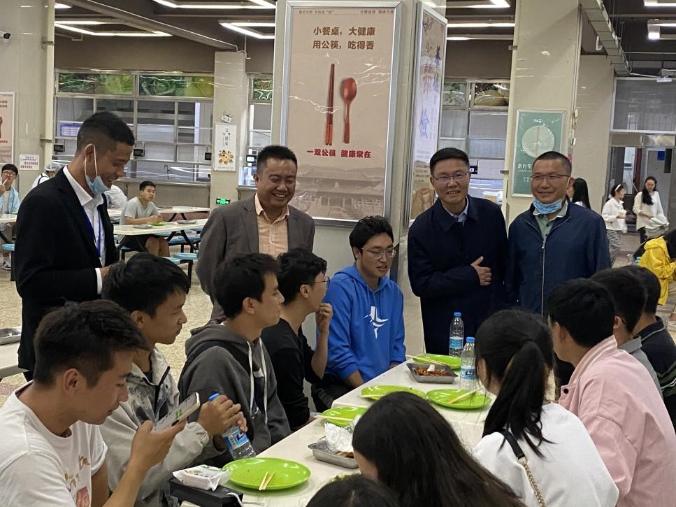 随后,王德强校长一行来到学生食堂,了解食堂饭菜供应与学生就餐情况,并与就餐同学亲切交谈,询问同学们所思所想,同学们畅所欲言,气氛温馨愉快。