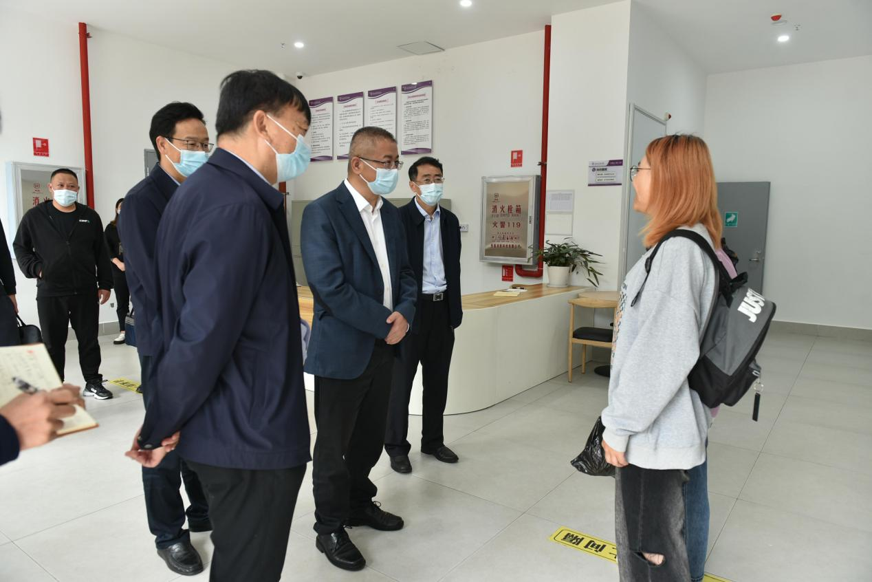 在文聚学生公寓,张祖武查看了学生进出记录,了解防疫措施,并实地查看了学生宿舍、相关配套设施等。他强调,学校后勤保障一定要以师生为中心,为学生提供优质、安全的服务。