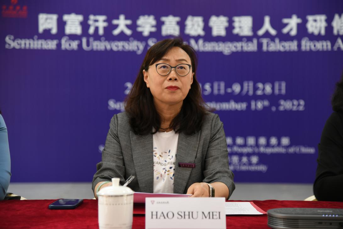 郝淑美对学员顺利结业表示热烈祝贺并对项目实施情况做了总结。她表示,通过本次研修,学员了解了中国高等教育的发展概况、现状及前景,中阿两国相互间交流了各自教育管理经验,希望今后中阿两国能建立更多的人文交流与教育合作,增进中阿友谊。