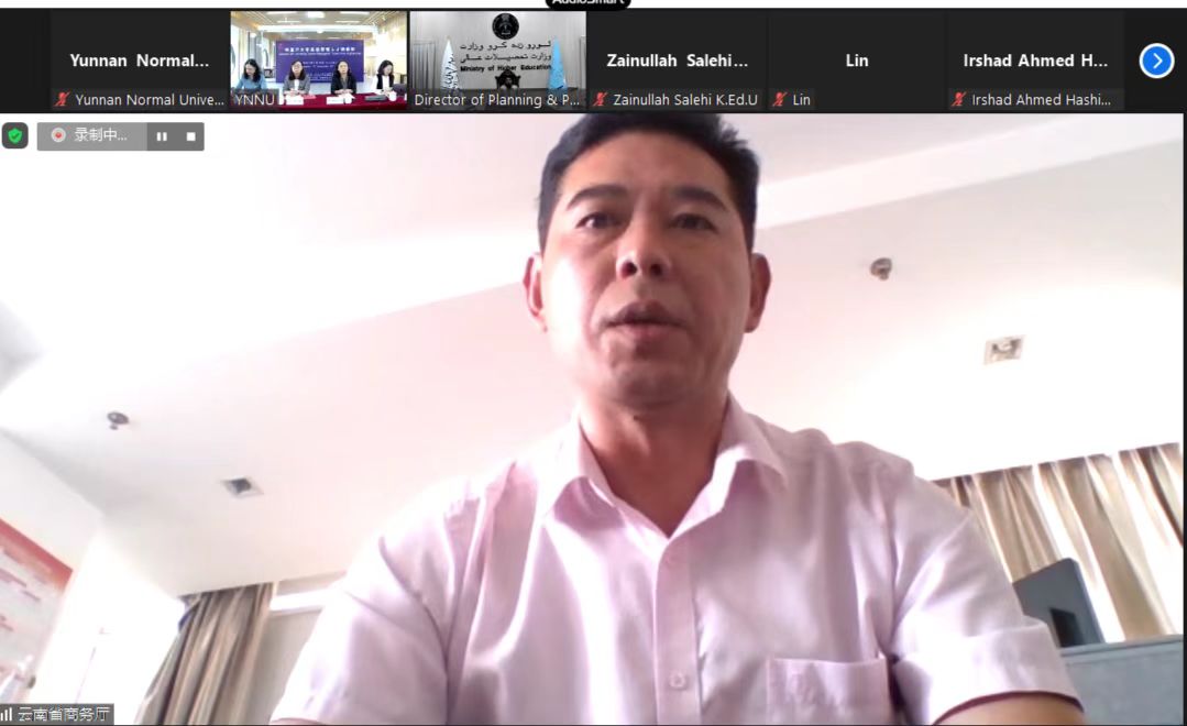 阿富汗高教部政策与计划司司长穆尼布·瑞兹万·乌拉代表学员发言。他分享了本次研修班的所感所悟,对主办方、承办方表示由衷感谢,他表示通过本次研修班深入地了解了中国高高等教育的发展概况、现状及前景,希望今后能与中国、云南建立更多的人文交流与教育合作,中国能在更广阔的领域对阿进行支援和帮助。