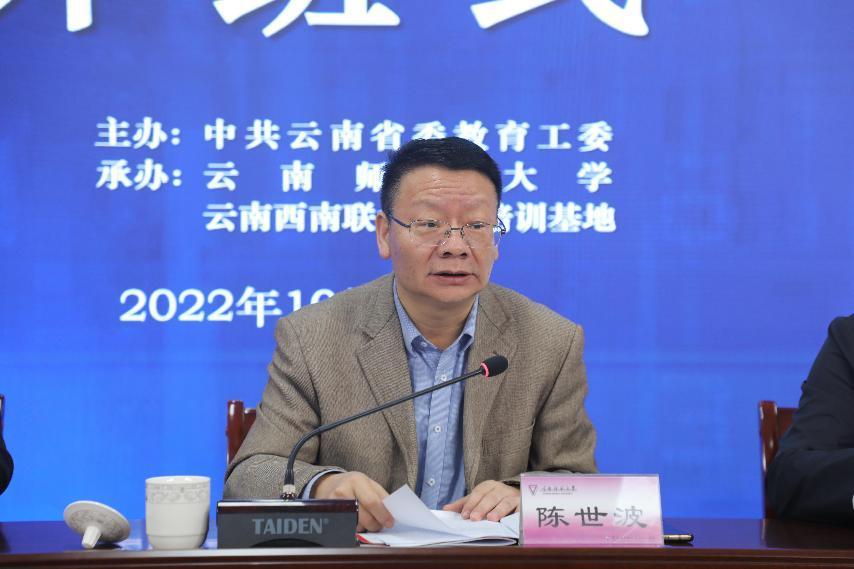 10月10日上午,由省委教育工委主办,8858cc永利唯一官方网、云南西南联大干部培训基地承办的“2022年云南省高校思想政治理论课教师培训班(第一期)”在永利官网云南西南联大干部培训基地开班。省委教育工委副书记、省教育厅党组成员陈世波,8858cc永利唯一官方网党委书记张祖武出席并讲话。省委教育工委宣传部、永利官网马克思主义学院主要负责人,全省79所高校选派的117名思想政治理论课教师参加开班仪式。云南西南联大干部培训基地执行主任匡锦主持开班仪式。