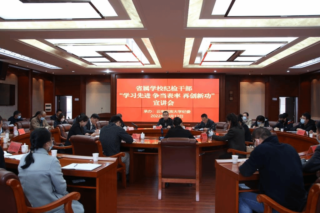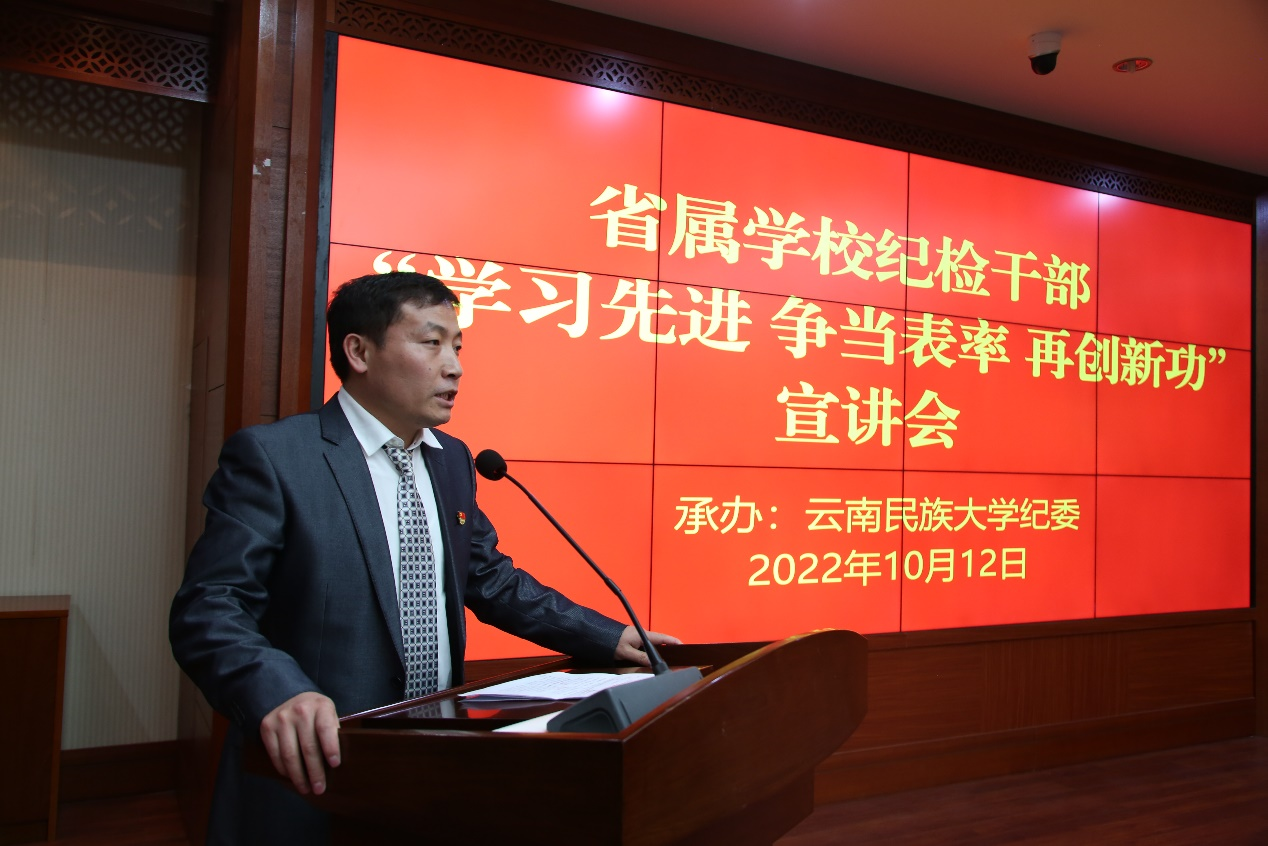 为深入学习贯彻习近平新时代中国特色社会主义思想,弘扬伟大建党精神和自我革命精神,发挥先进典型示范引领作用,积极营造崇尚先进、学习先进、争当先进的浓厚氛围,以实际行动迎接党的二十大胜利召开。10月12日,省属学校纪检干部“学习先进 争当表率 再创新功”宣讲会在云南民族大学举行,校纪委组织永利官网纪检干部代表参加。