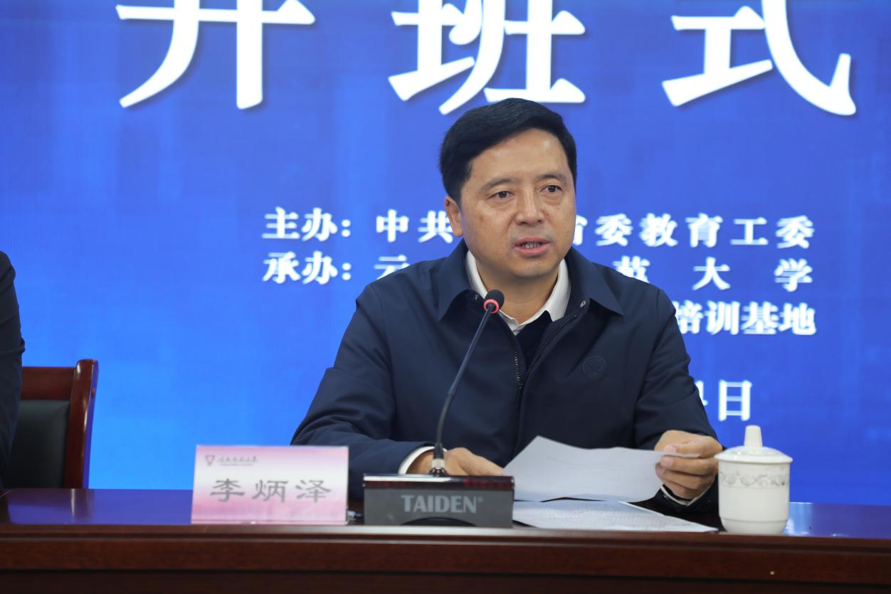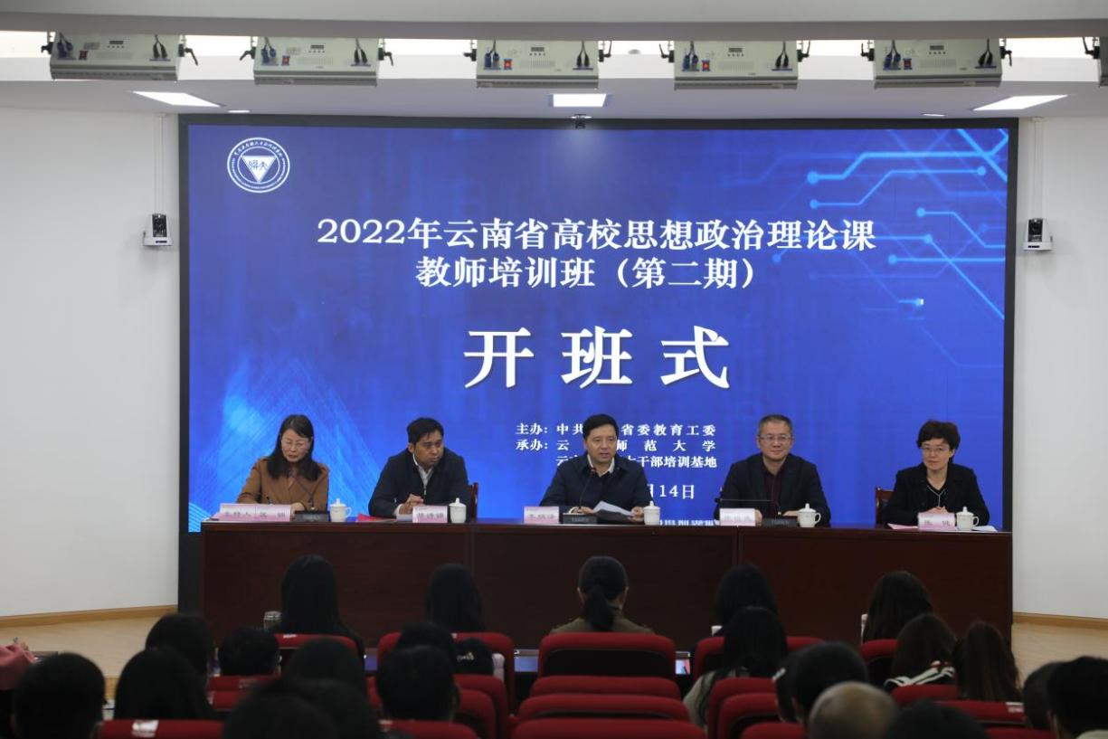 省委教育工委主办的“2022年云南省高校思想政治理论课教师培训班”(第二期)于10月14日在8858cc永利唯一官方网云南西南联大干部培训基地开班,来自全省78所高校的114名思想政治理论课教师参加培训。省委教育工委常务副书记李炳泽、永利官网党委书记张祖武、省委教育工委宣传部负责同志、永利官网马克思主义学院党委书记参加了开班仪式。仪式由云南西南联大干部培训基地执行主任匡锦主持。