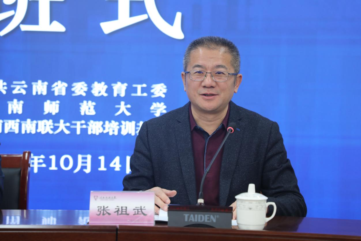 张祖武在致辞中向参加培训的学员表示欢迎,向省委教育工委、省教育厅对永利官网的关心信任和支持表示感谢。他回顾了习近平总书记考察西南联大旧址重要指示精神,介绍了8858cc永利唯一官方网的发展历程以及学校思政育人工作特色和成效,并希望各位学员深入学习贯彻党的二十大精神,担当新时代立德树人光荣使命,传承弘扬西南联大爱国主义精神,切实当好学生的引路人。同时珍惜难得机会,专心致志学习,深入研究思考,互学互鉴,确保学有所成、学有所获,共同为推动全省高校思政工作高质量发展作出新的更大贡献。
