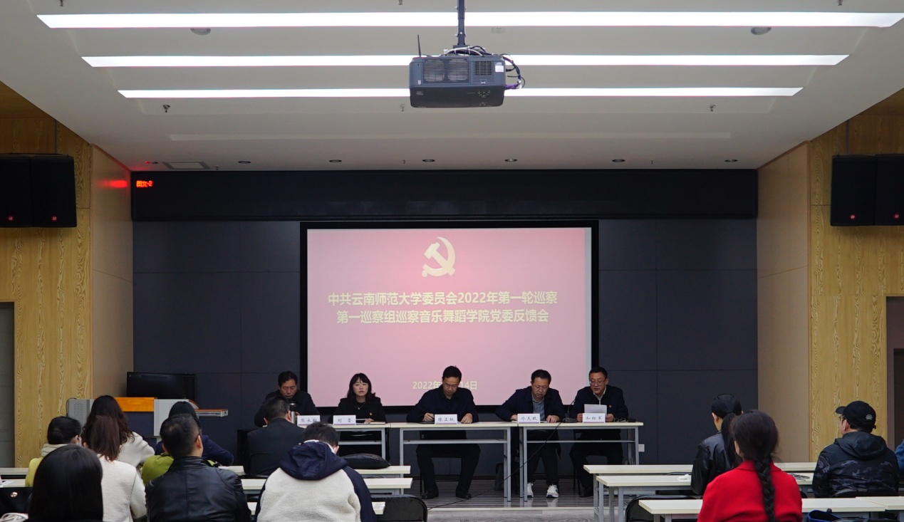 被巡察单位分管联系的副校长孟庆红、陈正权、安学斌、甘健侯,第一、第二巡察组全体组员,外国语学院、音乐舞蹈学院、美术学院、网络与信息中心全体领导班子成员及师生代表参加反馈会议。