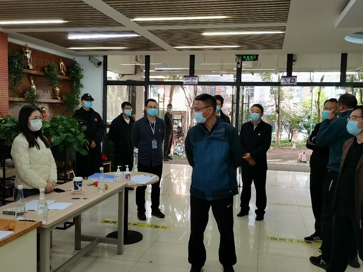 在东区学生宿舍7栋,张祖武、王德强向工作人员细致了解学生健康监测、餐饮供应状况,强调要及时回应学生关切,认真细致做好后勤保障,确保学生正常的学习生活秩序。