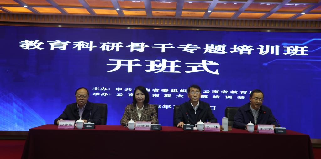 10月31日,由省委组织部、省委教育工委、省教育厅联合主办,云南西南联大干部培训基地承办的“云南省教育科研骨干专题培训班”在永利官网开班。省人民政府教育督导团总督学杨红琼、云南省教育科学研究院院长方贵荣、永利官网党委副书记张玮,全省各级教育科研部门负责人、骨干共175人参加开班仪式。云南西南联大干部培训基地执行副主任王宏伟主持仪式。