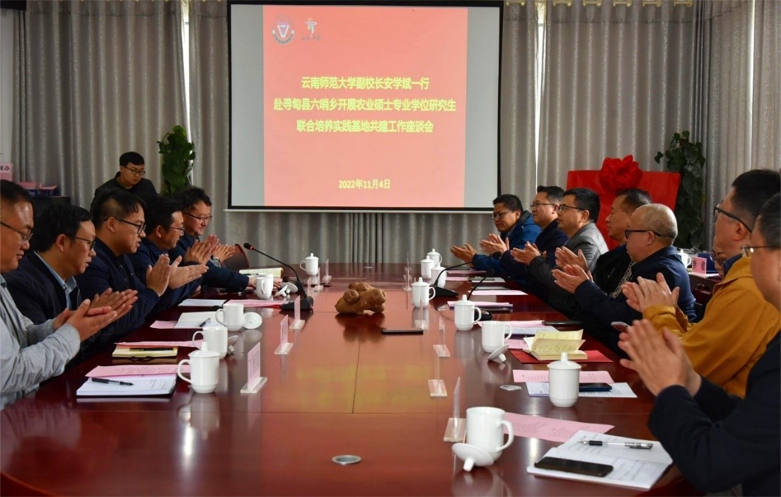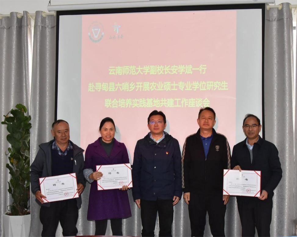 随后,农业硕士专业学位研究生联合培养实践基地共建工作座谈会暨基地揭牌仪式在寻甸县六哨乡人民政府举行,会议由骆华松主持。
