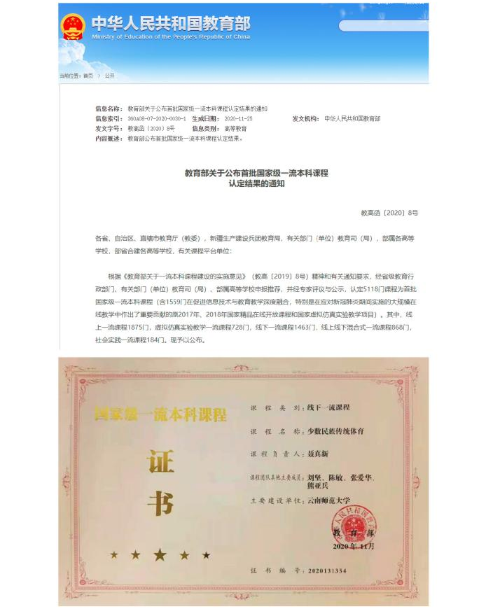 聂真新教授的课程《少数民族传统体育》被认定为首批国家级一流本科课程