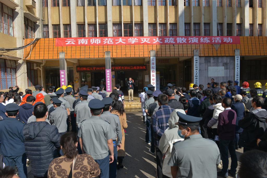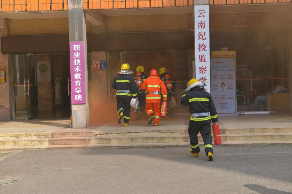 为提高学校消防“四个能力”建设工作水平,强化学校处置突发火险灾害的能力,11月8日,副校长牛治亮,联大校区管委会、保卫处、后勤保障服务中心、校医院、心理健康教育与咨询中心、职教学院师生、应急管理部消防救援局昆明训练总队相关人员共200余人,在一二·一西南联大校区职教学院明析楼四楼实验室开展发生火灾的现场处置演练。