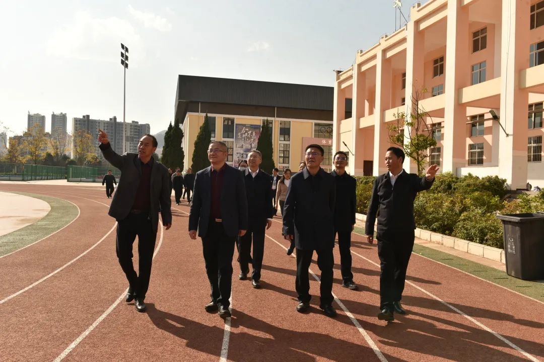 在禄劝一中,调研组一行实地走访了解了学校硬件、师资、招生及教育教学等方面的情况。随后,在禄劝会堂召开了调研座谈会。