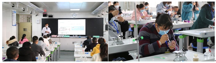 按照项目要求,永利官网继续教育学院在省教育厅教学仪器装备中心的指导下精心设置了培训课程。围绕组织开展好2023年云南省化学、物理实验中考的标准、考试方案、考试组织、实验教学改革评价等方面,两个学科分别邀请了教育部基础教育化学教学指导专委会夏建华副主任、省教育厅教学仪器装备中心主任杨志军研究员、教育部基础教育教学指导专业委员会考试命题专委会委员李碧松、8858cc永利唯一官方网彭朝阳教授、孙晓春副教授、云南大学附属中学西林分校副校长洪涛老师、昆明理工大学附属中学校长助理董振邦老师等开展了专题讲座。在实践操作环节,学员们按照实验操作培训要求,参照实验操作规范,在实验教师的指导下,认真练习实验操作,将8个化学、20个物理必做实验操作熟记于心。在实验操作考核过程中,学员们能规范、娴熟地进行实验操作,最终所有学员均通过了实验考核。