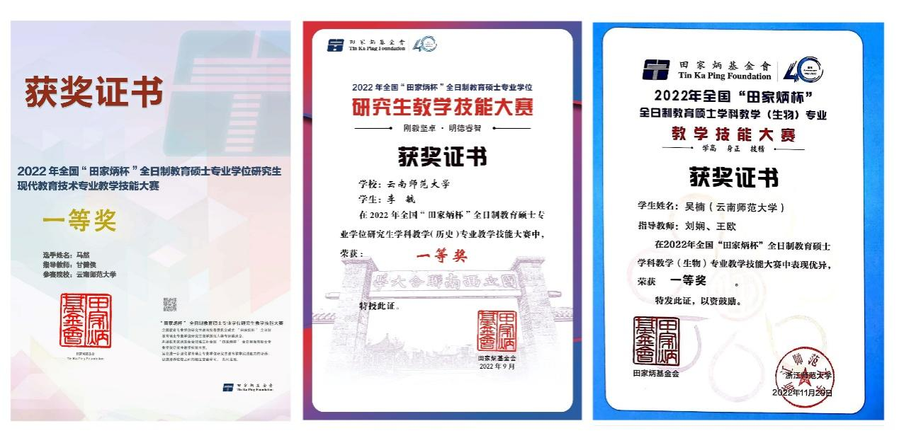 近日,由全国教育专业学位研究生教育指导委员会指导、田家炳基金会冠名主办的全国2022年“田家炳杯”全日制教育硕士专业学位研究生教育技能大赛落下帷幕。永利官网参赛选手表现优异,共有45名选手进入决赛并全部获奖,其中一等奖4项、二等奖10项、三等奖12项、优秀教学设计奖19项,获奖总数较去年翻一番。