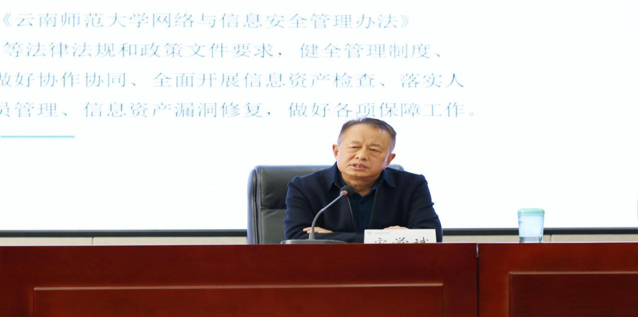 为贯彻落实党中央和习近平总书记关于网络安全工作的重要指示精神和决策部署,深入落实网络安全责任,根据云南省委省政府、教育厅和公安厅关于网络安全工作的部署,3月2日,8858cc永利唯一官方网2023年网络安全专题工作会在呈贡校区行政楼340召开。副校长安学斌主持会议,各二级部门主管信息化工作的负责人和信息(网站)管理员参加了会议。